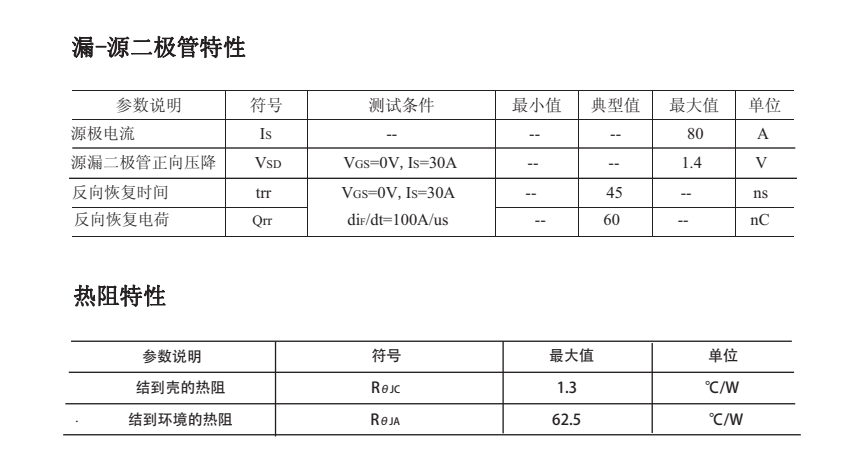 最大脈沖漏極電流(IDM ):480(A);靜態(tài)導通電阻(typ):VGS=10V則為2.95mΩ;反向傳輸電容:97pF。